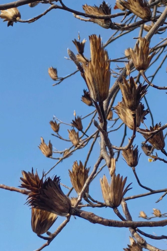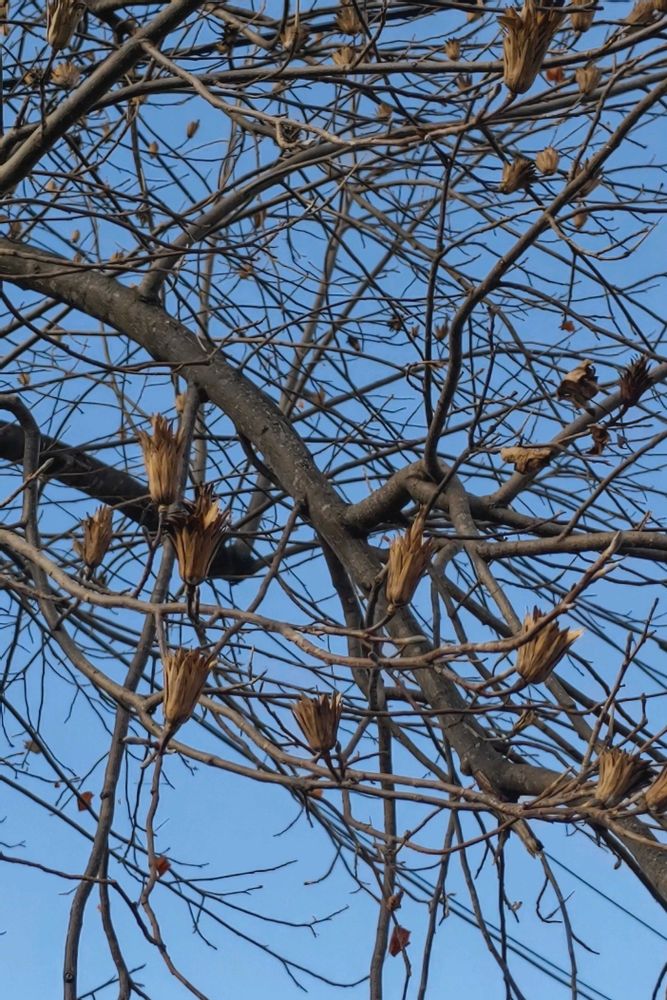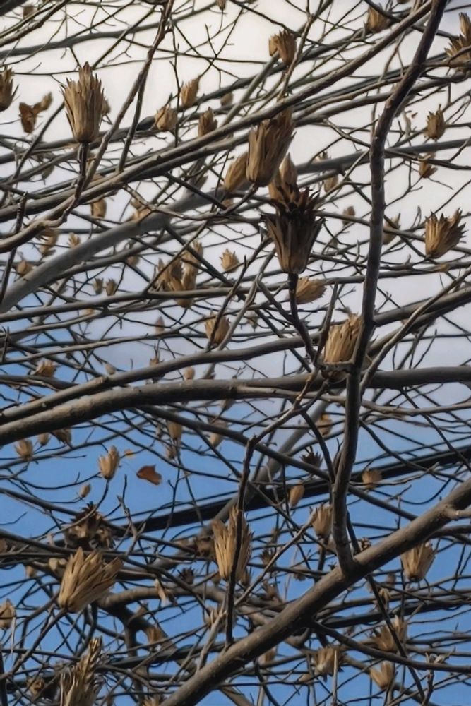 ①②③④ユリノキ、葉を落とし翼果を残して 12/8