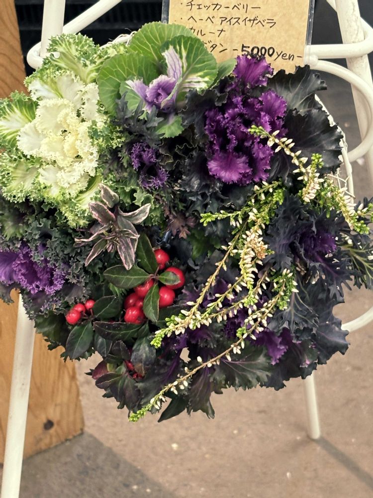 お花屋さんの葉牡丹リースステキ❣️😍