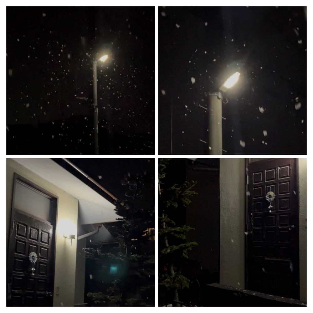 昨夜、一時的に降った雪を投稿しますね🌨️🌨️ 街灯の光に映る雪も素敵💡😆🥰😍🤩💕❄️ 我が家の前の道路の所で、撮影しました🌨️🌨️✌️ 一応、クリスマス時期なので、分かり辛いですが我が家の玄関前に置いてあるモミの木と、玄関のドアの所に飾ったDAISOで買って来た、可愛らしいキラキラした小さなリースも一緒に写しました✌️😆✨✨🌲🎄🌿🌿⭕️⭕️