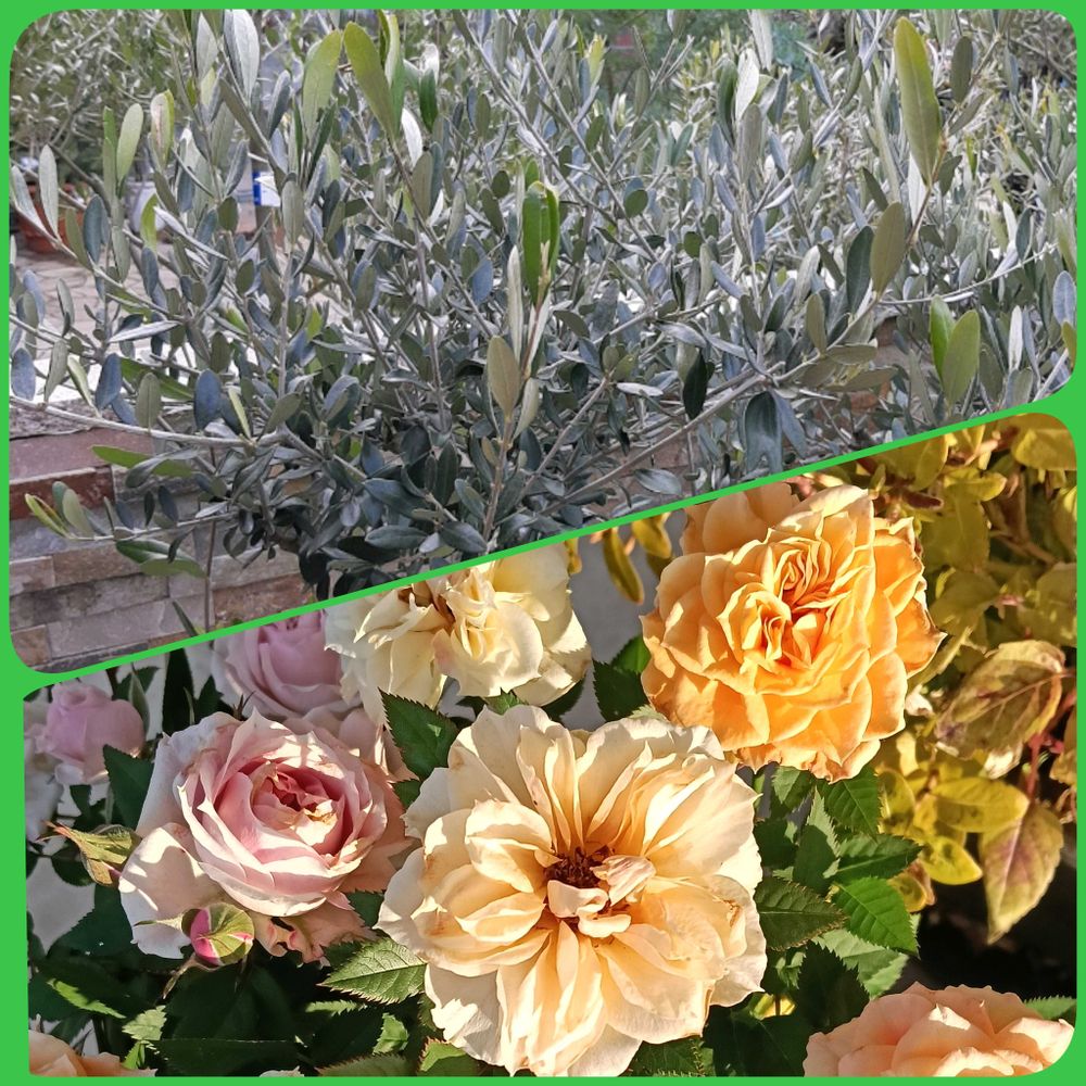 おはようございます!雨が降ってます。オリーブとご近所さんのバラ🌹です。今日も元気で頑張りましょうね💪😊