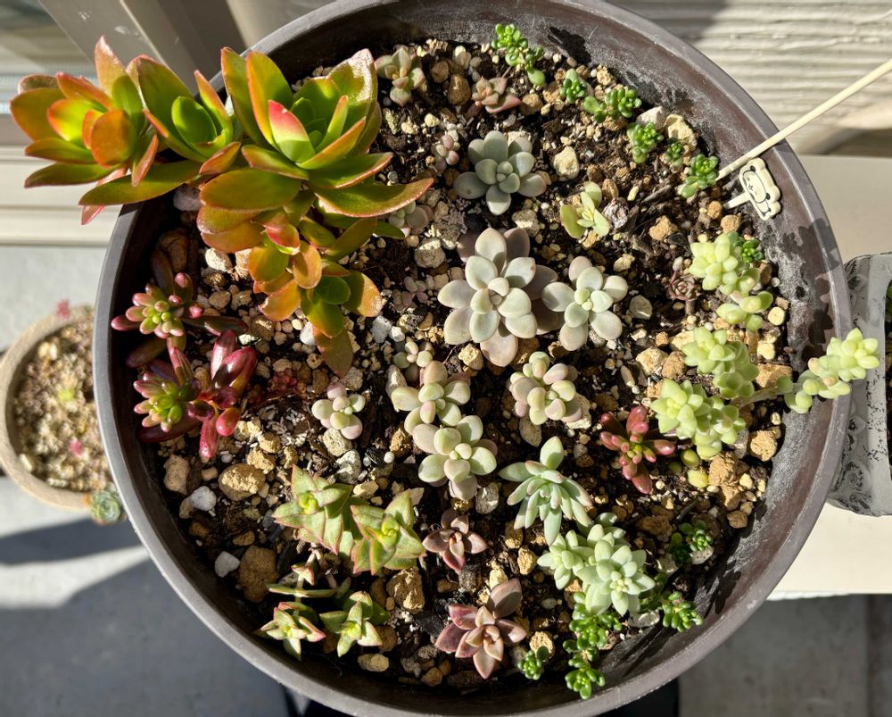 夏にジャングル化しては、チョッキン✂️して、またジャングル化しては…を繰り返している寄せ集めた多肉鉢✨