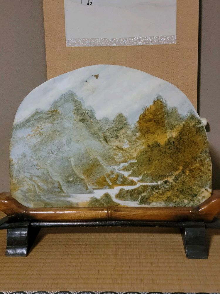 1️⃣床の間に凛々しく飾られている石のミ風景画