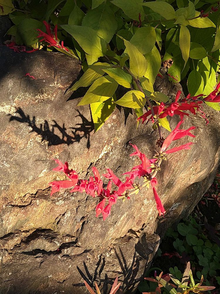 パイナップルセージ、石に🪨に写る影も、素敵に撮れてますね😊