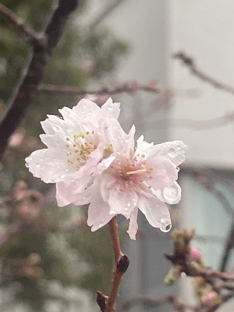 朝雨☔が降ってましたがマンション敷地内に咲いているジュウガツサクラを撮ってきました