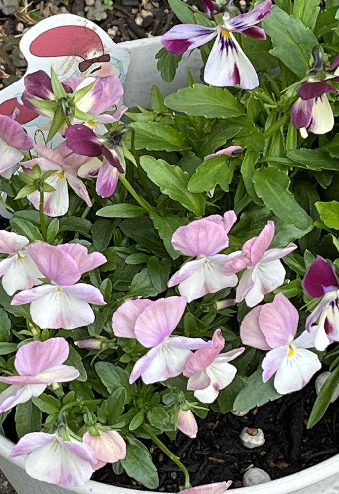 春るるるとマリアの微笑みを寄せ植えにしてます。