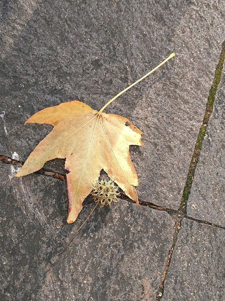 丸の内仲通りは、ケヤキ並木ですが、その中に、モミジバフウの木が数本あります