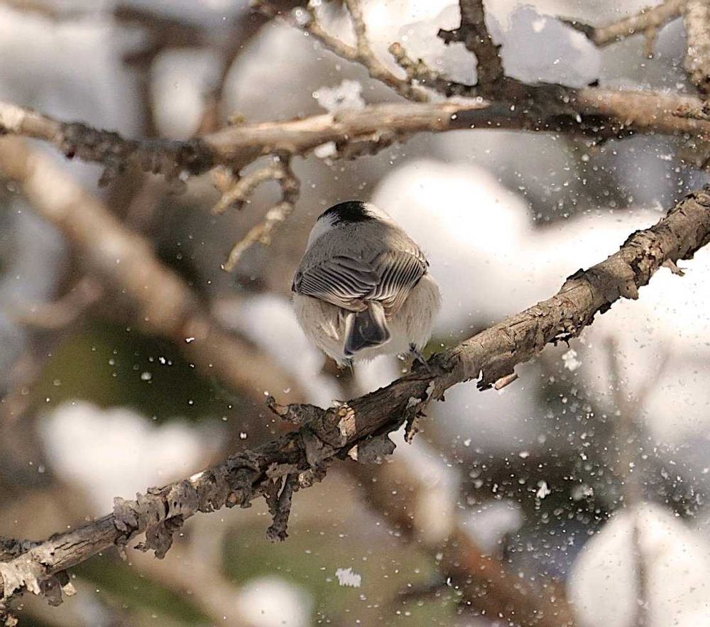 とまった拍子に枝から雪が❄😚