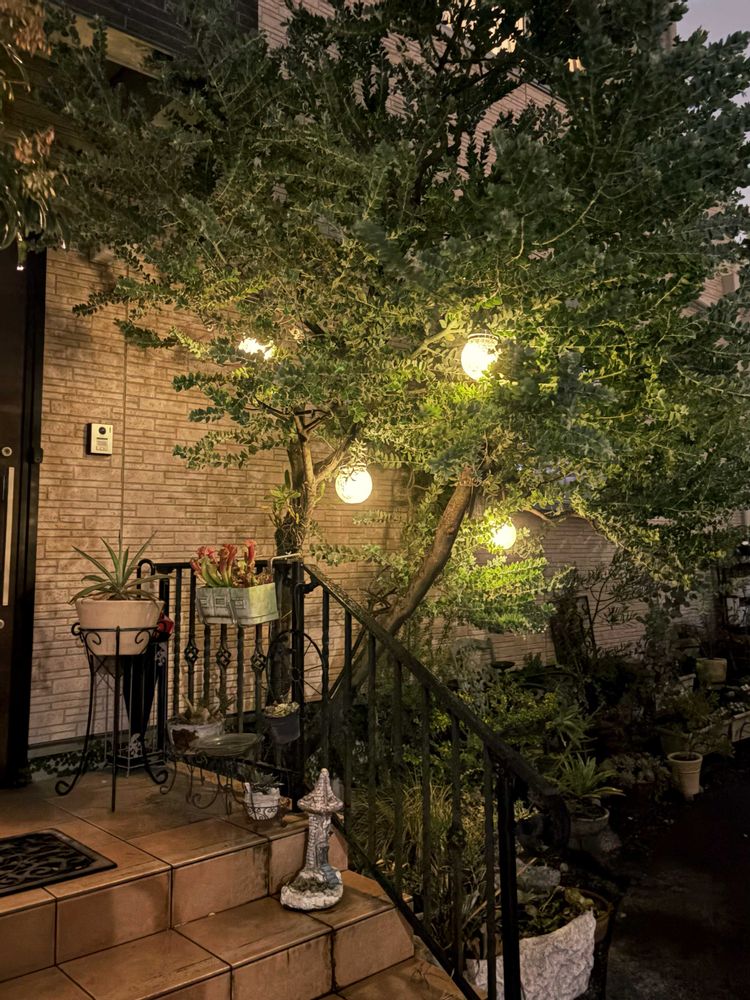 以前ロープ状のを何回かつけたことがあったけど、手間がかかるのでソーラーのランタンタイプにしました。