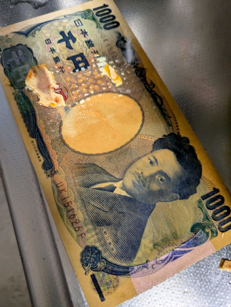 2階の片付けしていたら、母の三味線の木箱から替え糸と一緒にお金が、お菓子か、張り付いてて、変化しています。