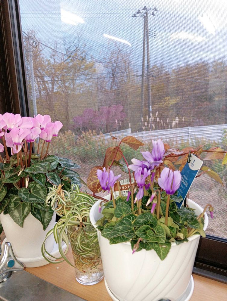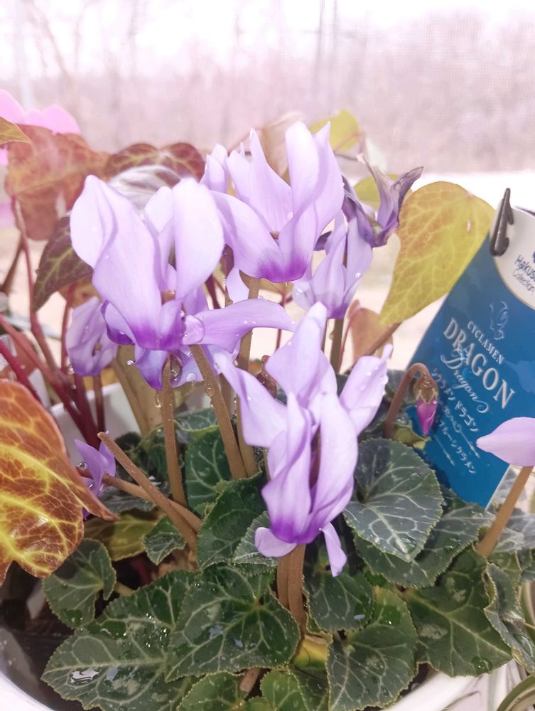 今日の趣味の園芸で紹介した💜のシクラメン💜ドラゴン、窓べでご機嫌です💝