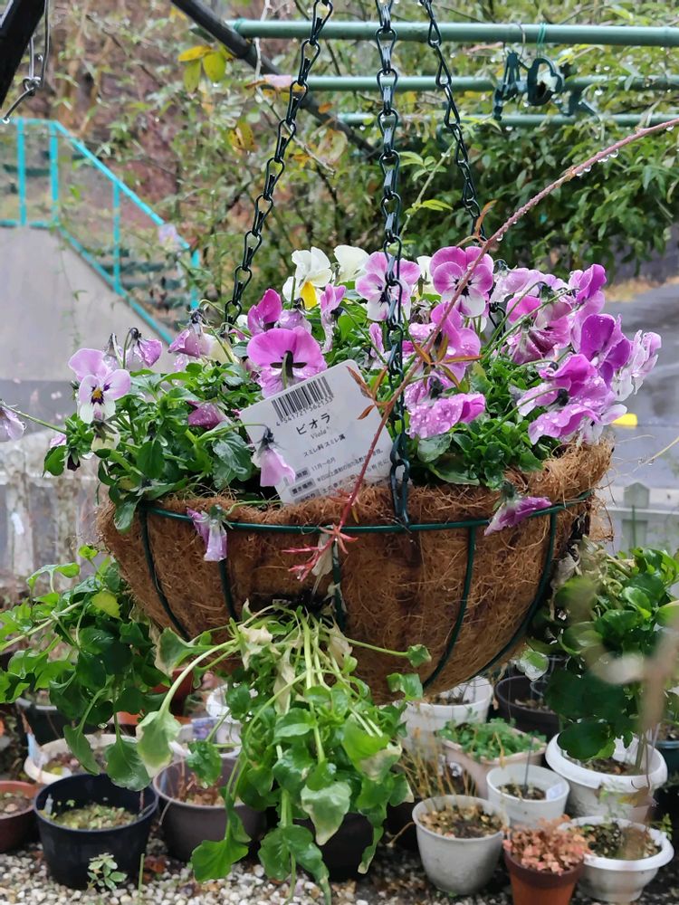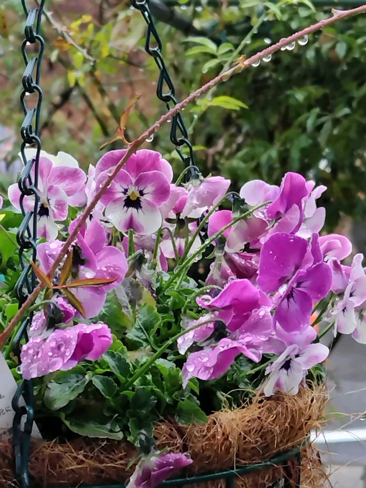 ハンギングバスケットのビオラさん達も、お水はたっぷり貰えて良かったですがちょっと寒そう💦