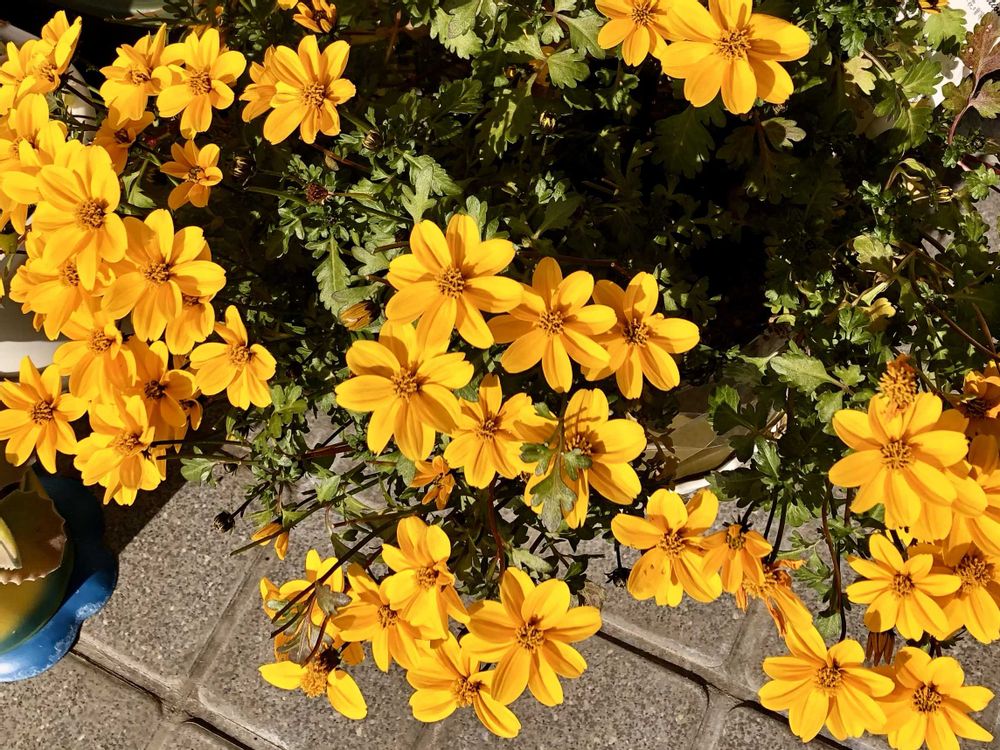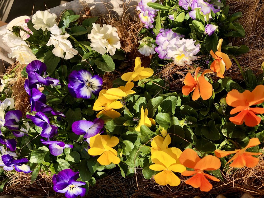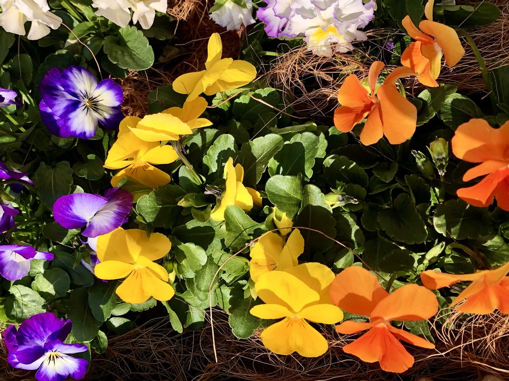 今日の私のお花さんはヒデンスさんとビオラさんたちです٩(๑❛ᴗ❛๑)۶💛🧡💚
