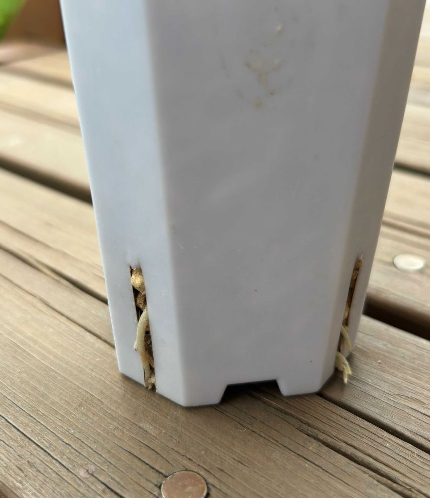 スリット鉢のスリットから根がはみ出していました…すごく元気な株です☺️