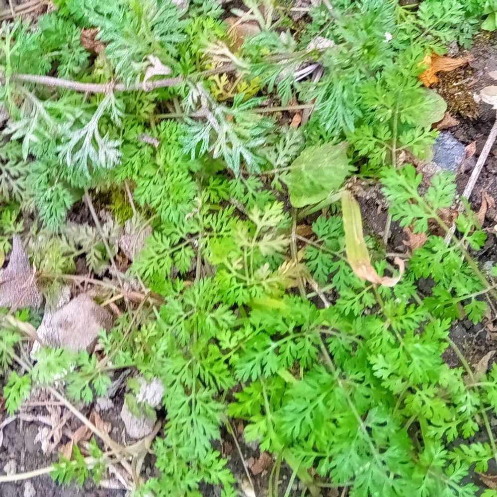④雨が上がったので抜いて片付けてたらオルレアのこぼれ種っ子がびっしり🌱🌱🌱