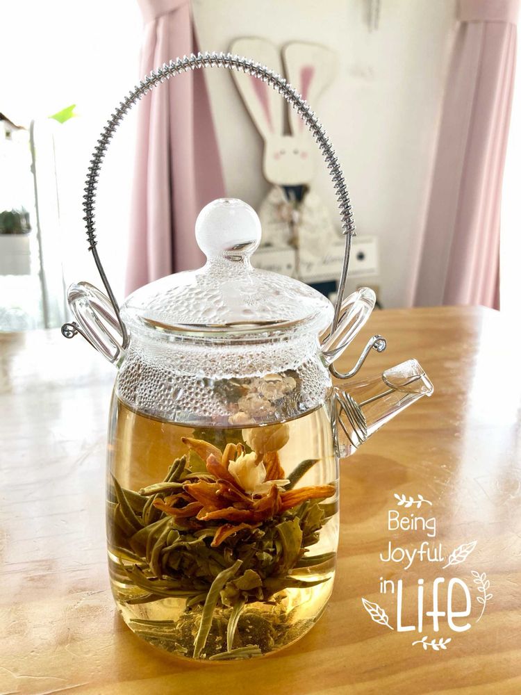 ティーポットの中でお花が開いて見ているだけでも楽しくなっちゃいますね🤗❣️ 月餅🥮♥ 美味しいですよね〜🤤💕