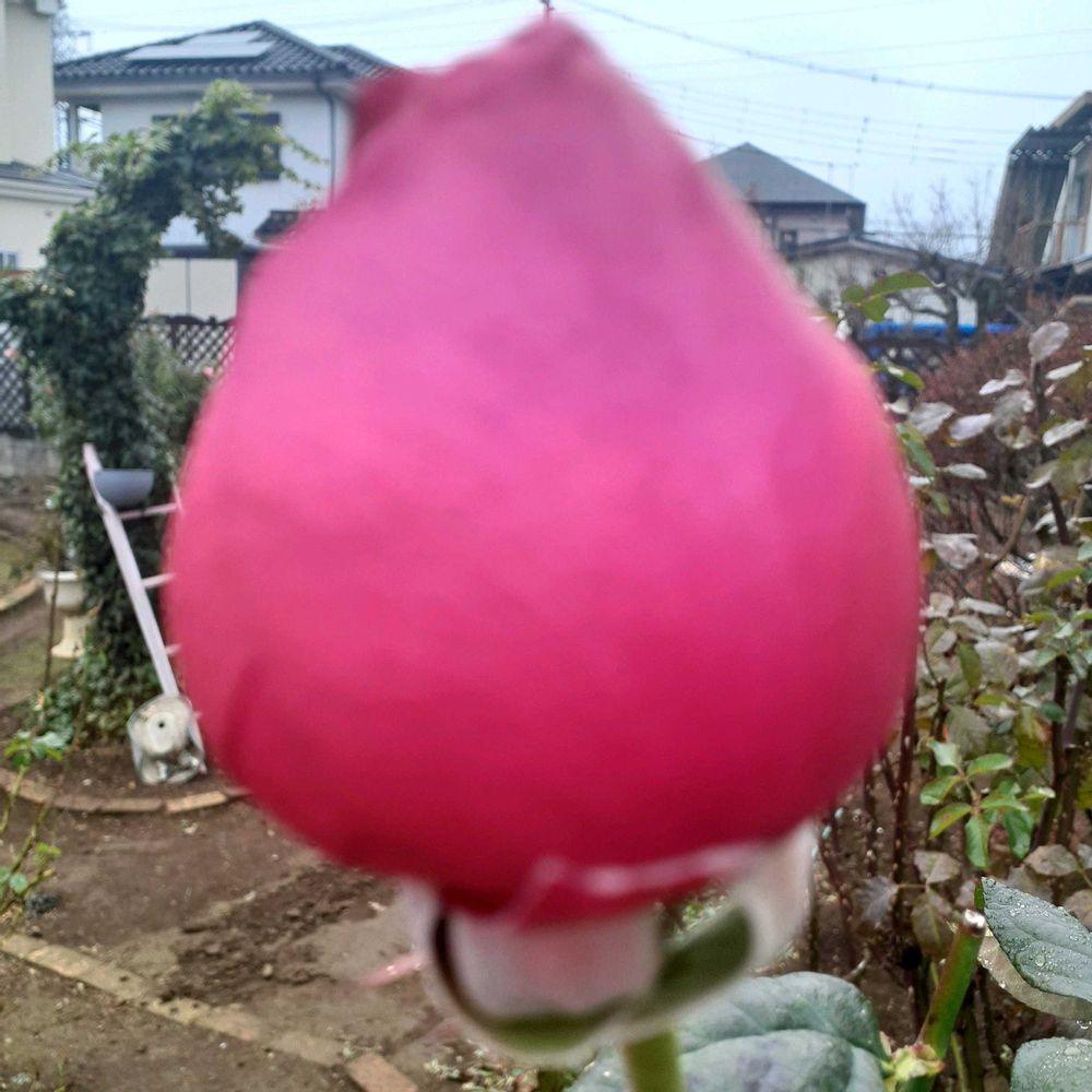 ④最後の蕾ゲーテさん、つるつるでかわいい、咲いておくれ🌹