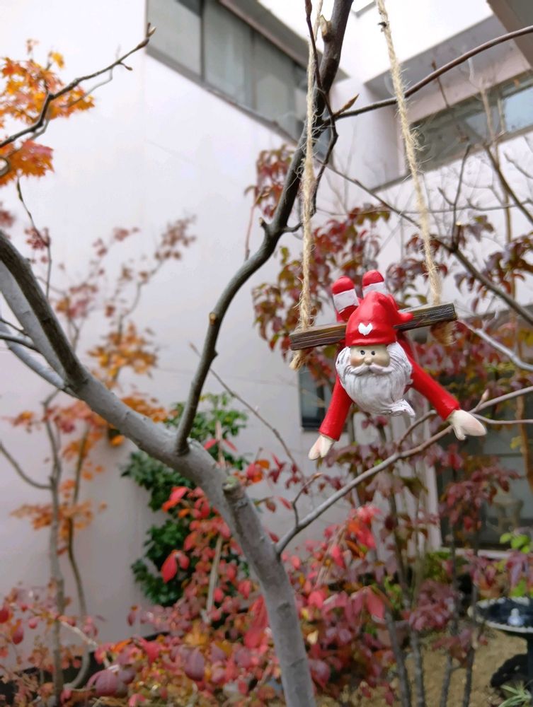 今朝は、お隣の園児に見えるように、隣の境界の低い場所に飾ってきました🎅