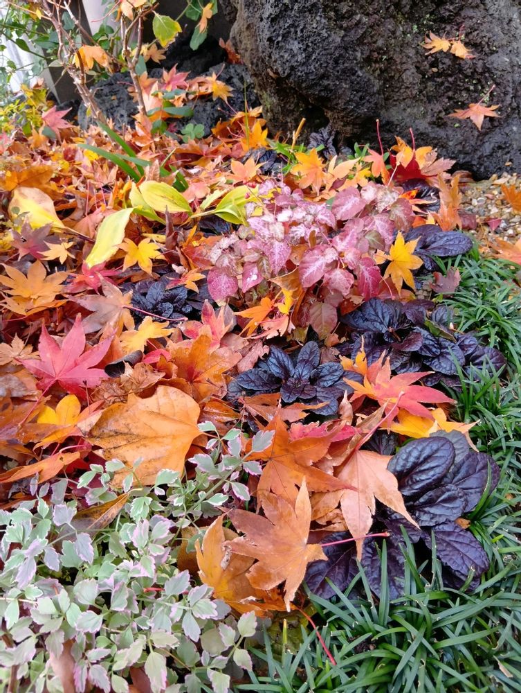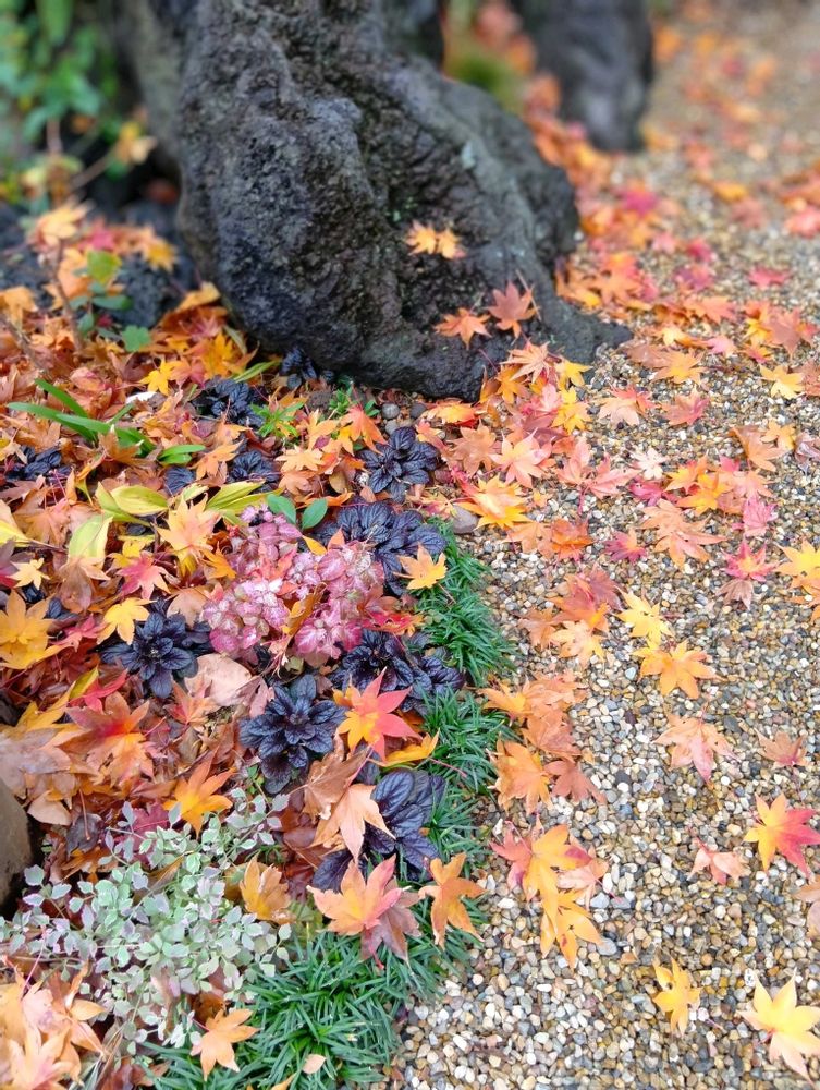 落ちた葉っぱがそのまま他の植物とコラボしてる地面もアーティスティック👀✨
