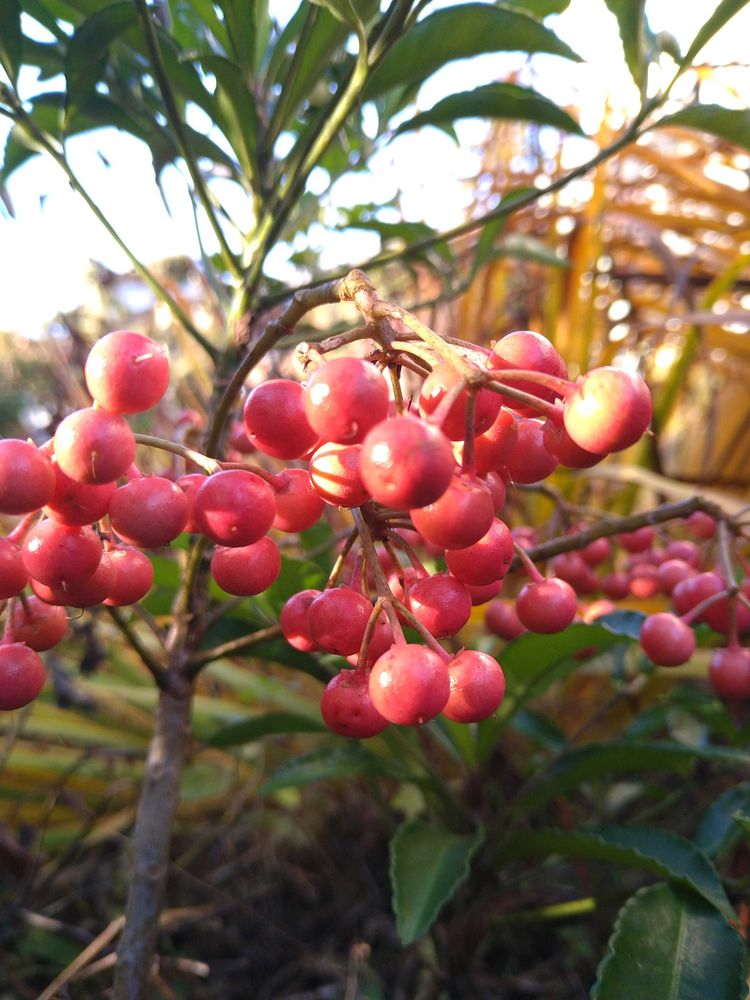 自生の赤と白の実のマンリョウは、ほっといても増えていますが、2年前に園芸センターでピンクの実を見つけて見過ごせず迎えました🥰