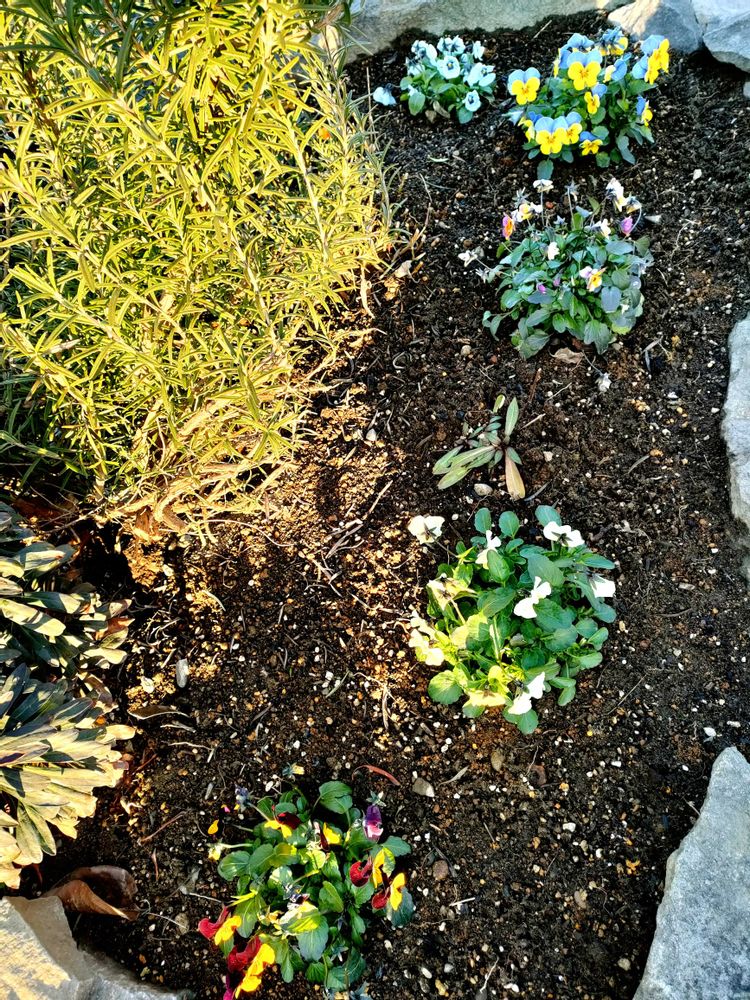 欲しかったけれど残念ながら出会えず🥲別のビオラを花壇に植えてしまっていたのですが(2枚め)、ふらりと立ち寄った園芸店で寒色系ビオラを発見ー❗️👀