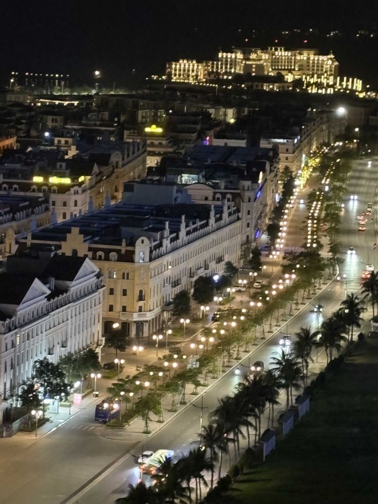 1枚目の夜景の写真、白い建物にヤシの木🌴が