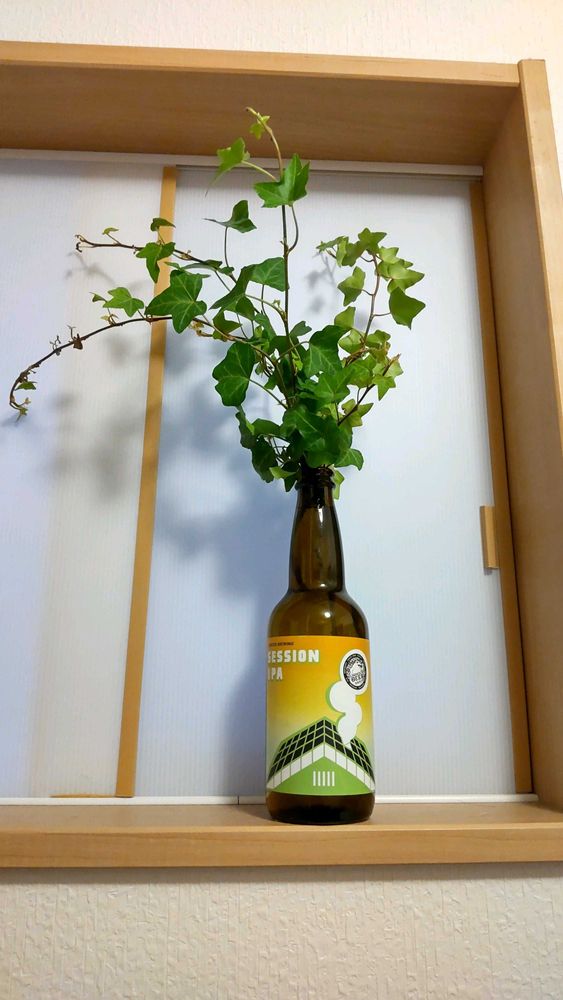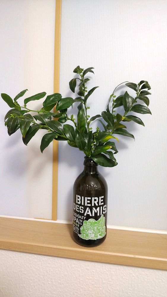 カットした枝、捨てがたくてオシャレな空き瓶に挿して楽しんでいます🩷💚😊😊🥰🥳