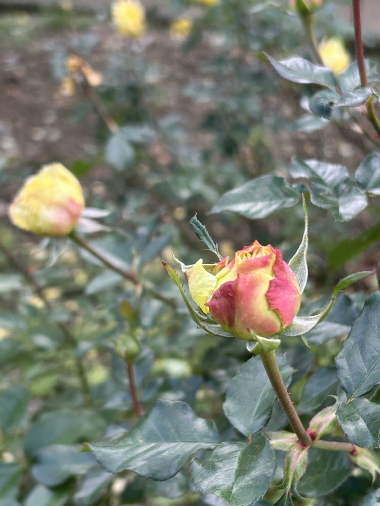 黄色に赤色がのる色彩のツボミがなんとも言えず🥰