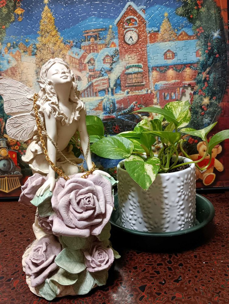 💚寄り添ってもらっているポトスさんもエンジェルさんの可憐さに(。・・。)ポッ♪