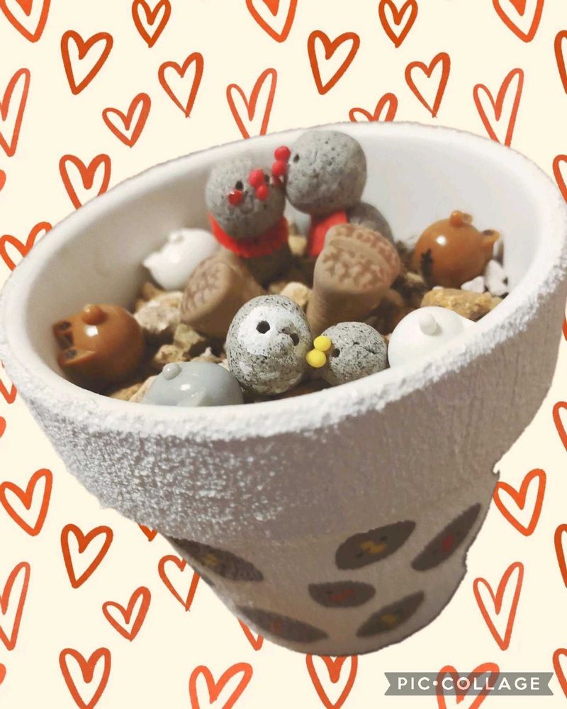 KOHさんの石ころタン鉢と月の雫さんのオジゾータン、石コロタン、石フクロータン、みんないちゃこら〜ꉂ🤣𐤔🤣🤣💕🎶