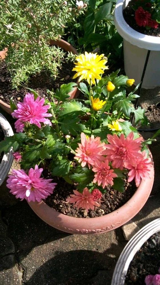 花友さんのキクの寄せ植え、3色可愛い色です🌸