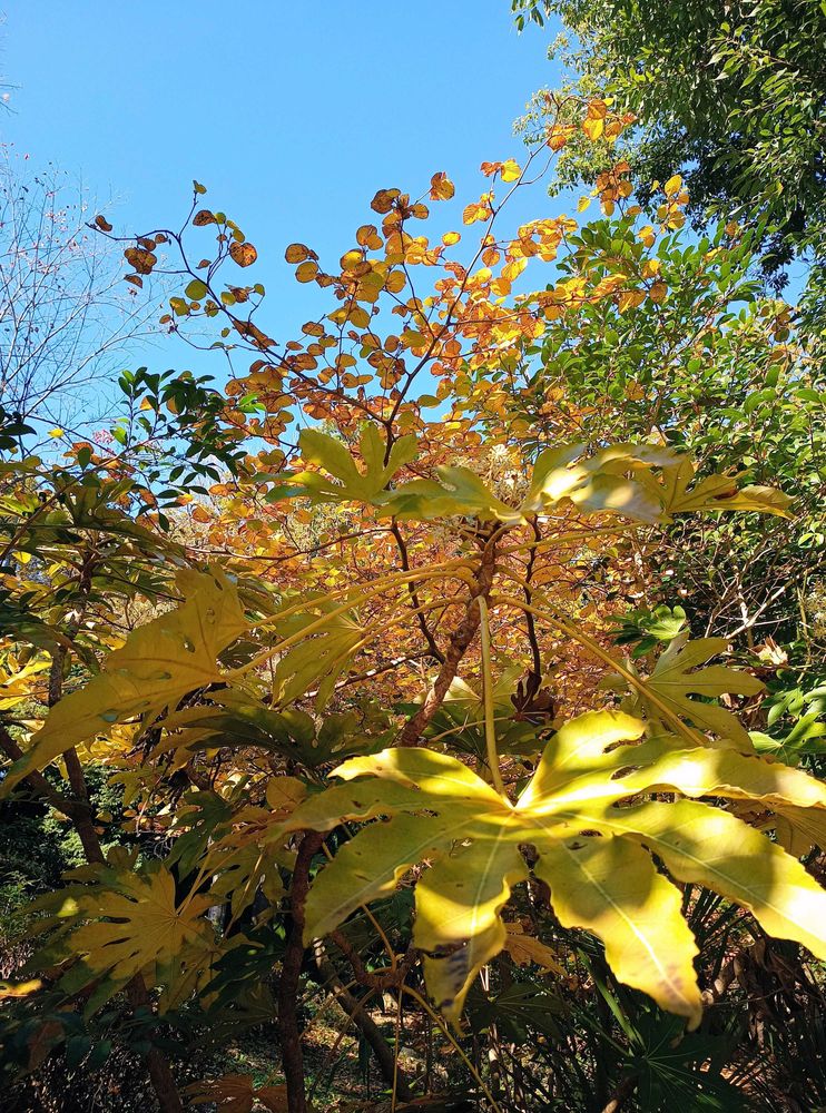 4⃣ お寺のヤツデ、黄色い葉っぱが綺麗でした。12月6日