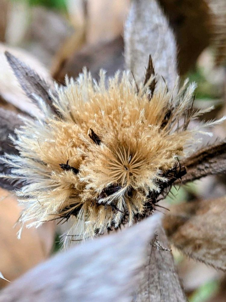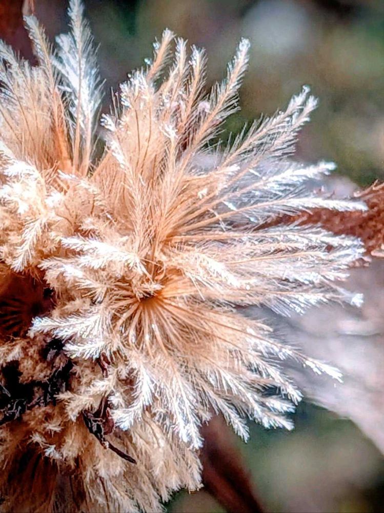 オケラの冠毛、☀が当たるとキラキラしてきれい何ですが、この日は☁️でした😊