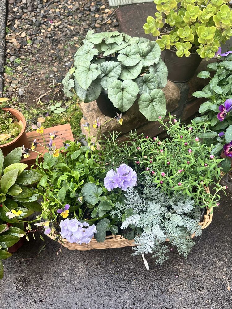 3.園芸店で家族👨が選んでくれた昨日の寄せ植えを🆙にしました🤗🪴🌸💖