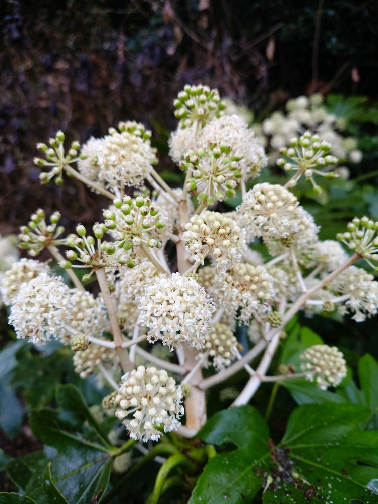 今日のお花🌼、ヤツデです。
