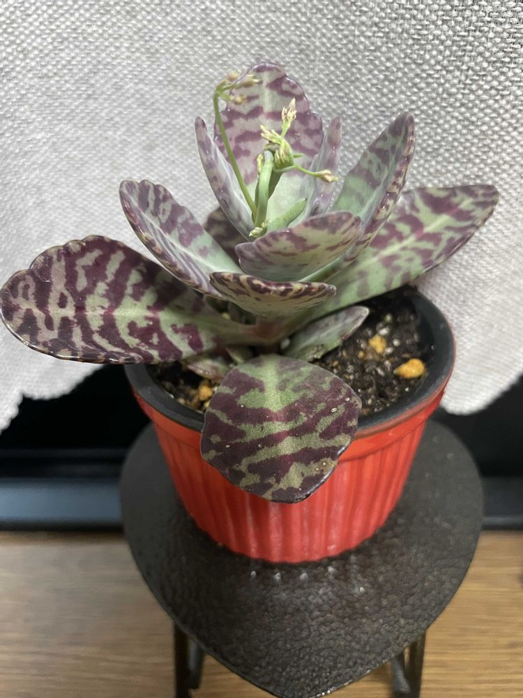 ユニークな葉っぱの模様の多肉さんですね〜🌿