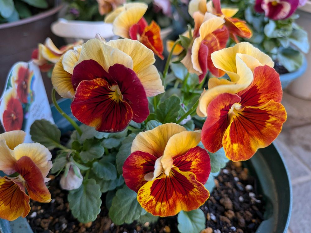 可愛らしいです。他のビオラ達もだいぶ花数が増えてきましたが、強風と昨日の雨で、だいぶ擦れたりして、汚くなってました💦