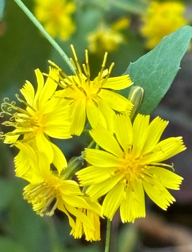 葉の縁に浅い鋸歯があり、基部が茎を抱く(半抱茎)が特徴です🌼