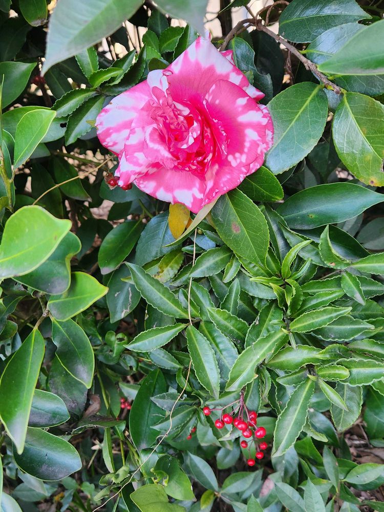 サザンカと南天、彩りがとても素敵ですね〜😊💕