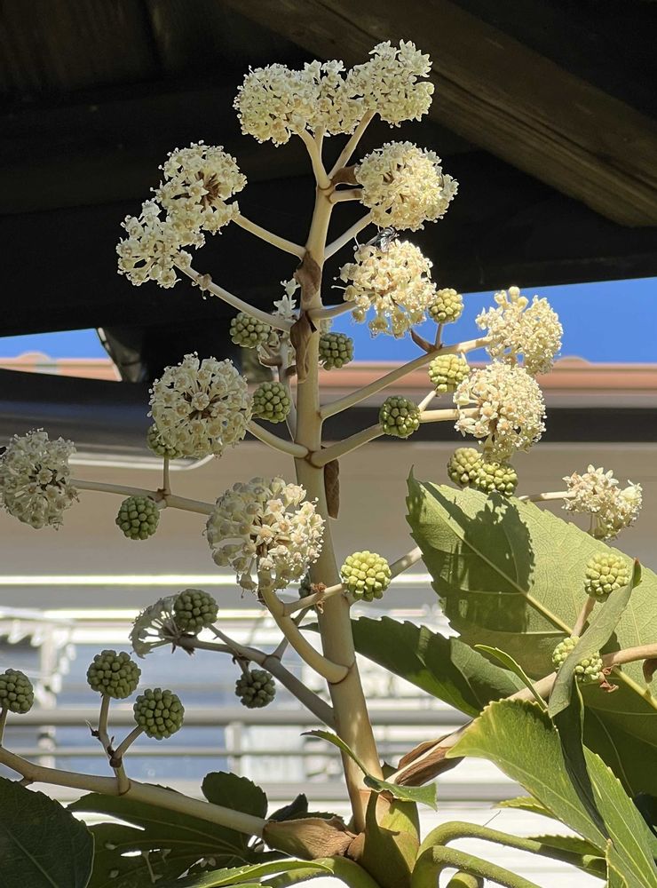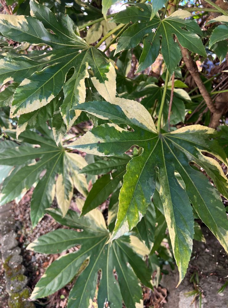 庭,斑入り八手の葉,我が家の玄関前の八手の花の投稿画像