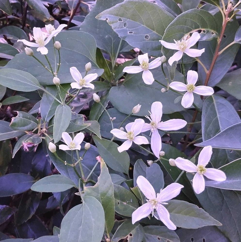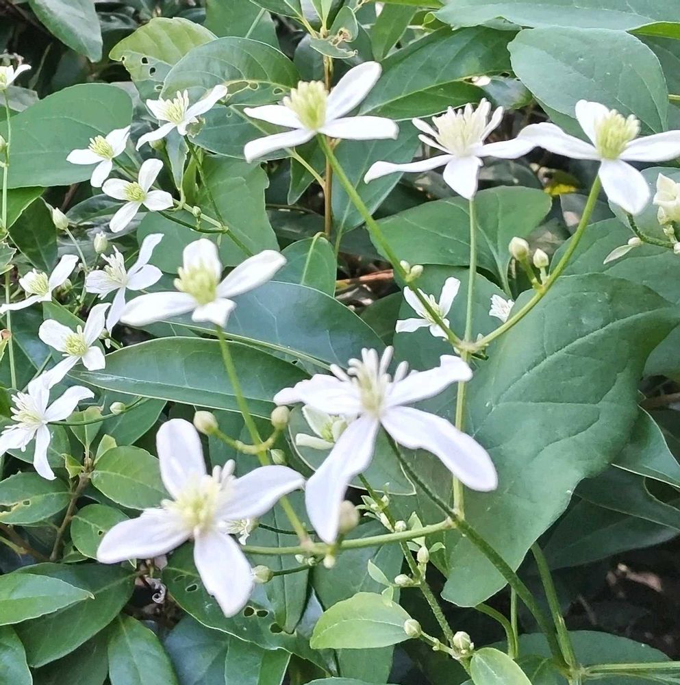 センニンソウの花期は8~9月で、先日は仙人になったセンニンソウを投稿したのに、ここでは毎年今頃に咲くんです‼️