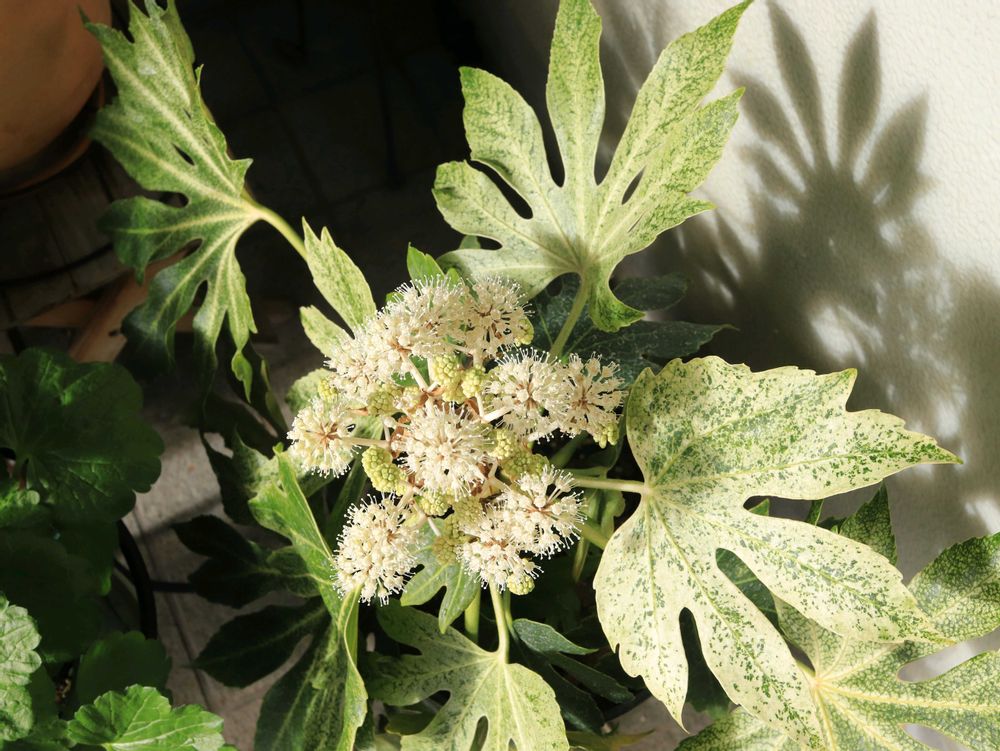 子供の頃の印象でヤツデはあまり好きでなかったのですが(ぼうぼうに伸びまくっていたので🤣)、最近花屋さんの店先で見つけていいなぁ👀(お高いのですよ❗️)