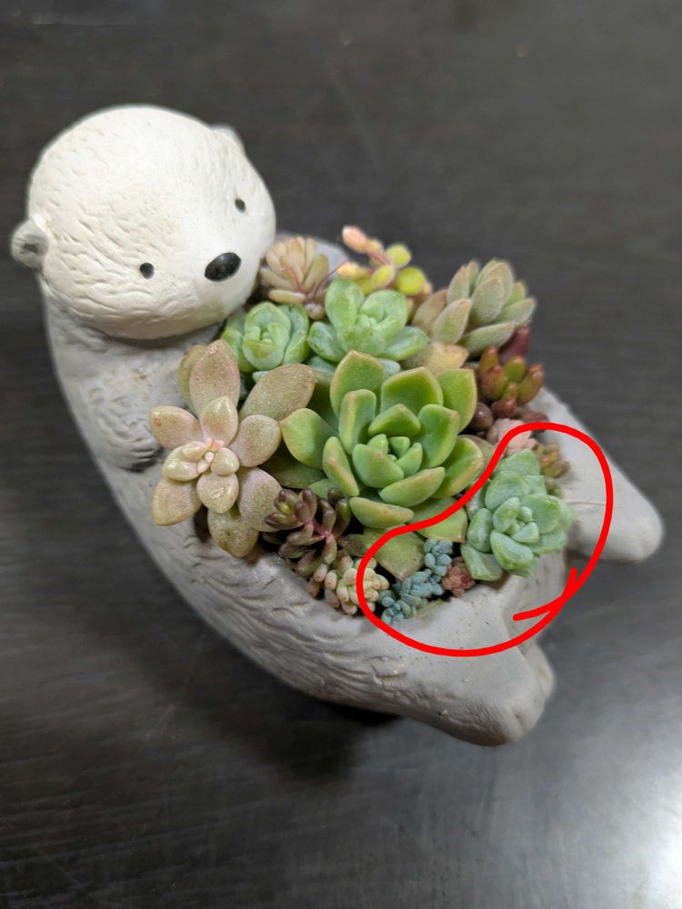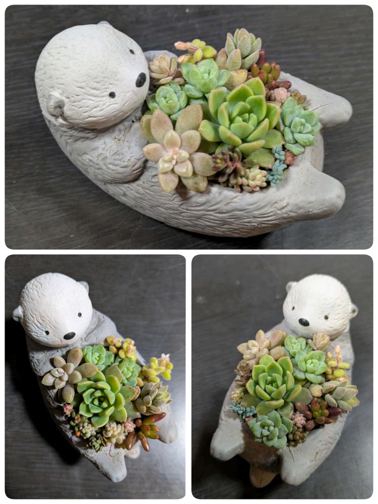 らっこの鉢可愛い😍ですね〜寄せ植えも可愛い 多肉さんはやっぱり鉢もこだわった方がいい様ですね 自分で作られるといいですね😊