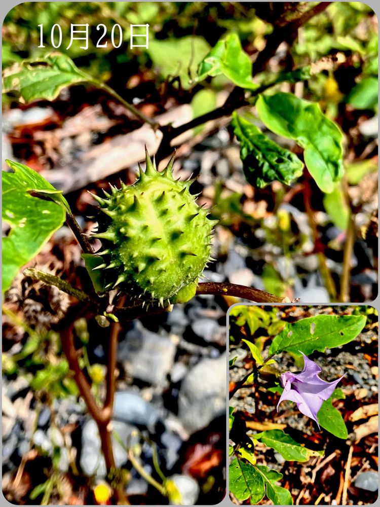 花後でトゲトゲの果実は、11/3に投稿したヨウシュチョウセンアサガオに似ていますが、丸い形で短いトゲは明らかに違うものでした。