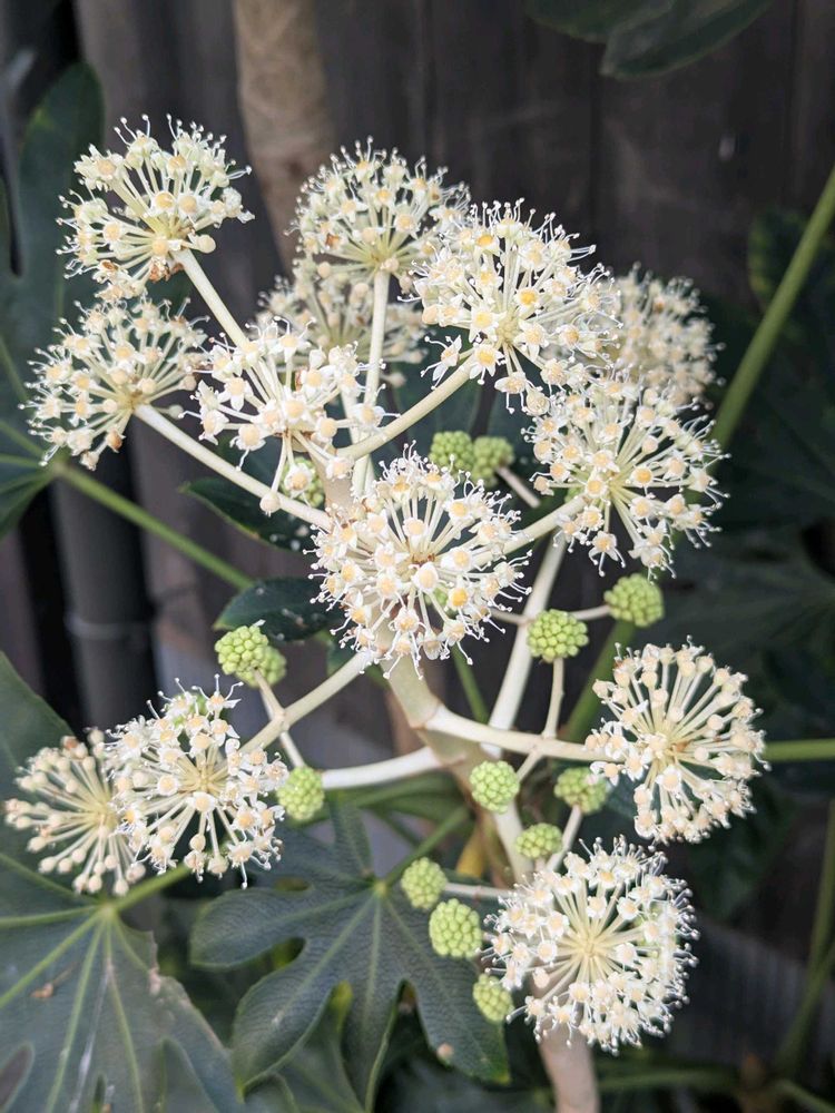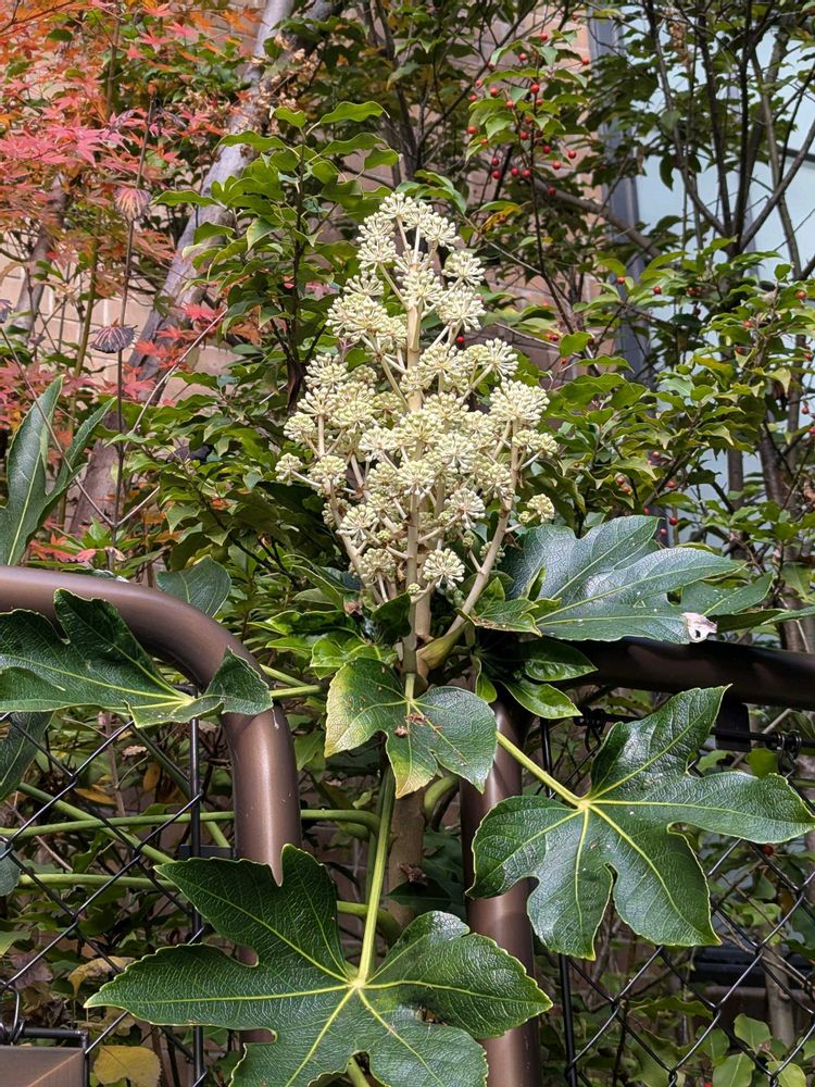 ⑤少し前、植物園にて撮影のヤツデのお花です🤳
