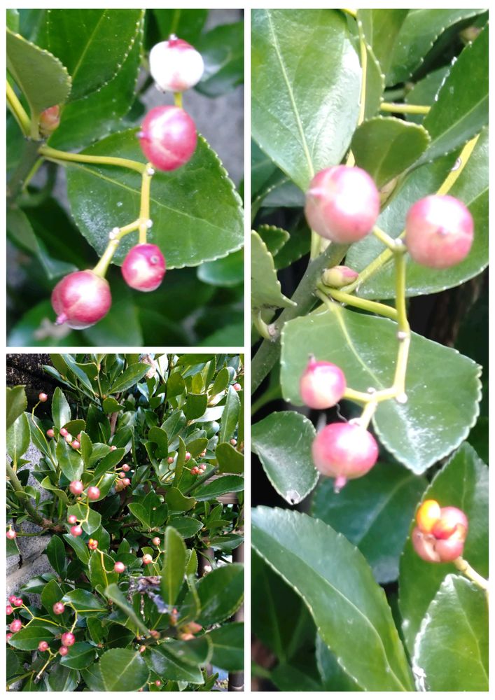 今年は実が付き、薄赤く色付き、実が弾けて、白やピンクが出て来て〜