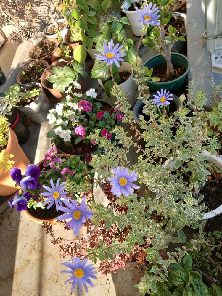 3️⃣ブルーデージーと記念撮影💙💜ごちゃごちゃのベランダです🤣