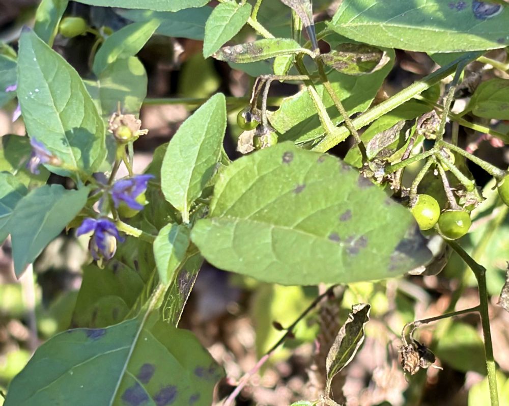 花が無いと言っていたら、とっても小さいイヌホオズキの紫色の花が咲いてました😍