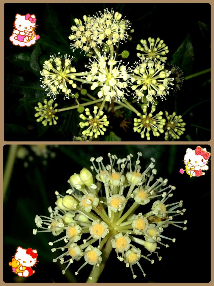 暗いバックに白いヤツデの花がコントラストをなして綺麗ですね〜😍
