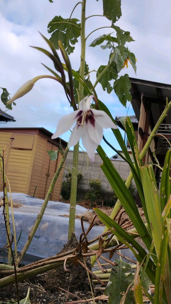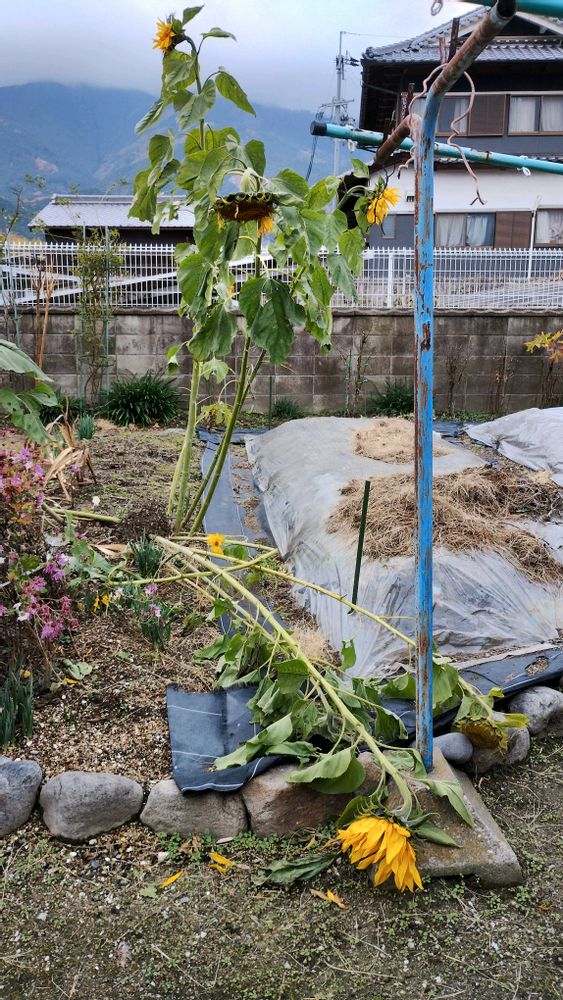 実家のツワブキ花密かに咲いてるが体調悪い兄は綺麗だ!て、見れているのか⁉️裏庭には今頃大輪ヒマワリ咲いてるが余りに重いのか咲いたまま倒れてる😥変わった花も咲いてた、今晩又赤ちゃん生まれたよ🥹🥹何人目かな⁉️嫁入りした子も居るから数解らなくなったわ