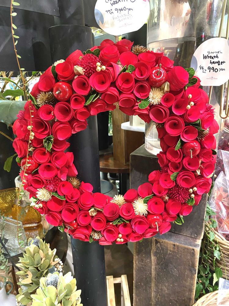 真っ赤なお花のリースかわいいですね~🌼🌼🌼